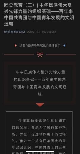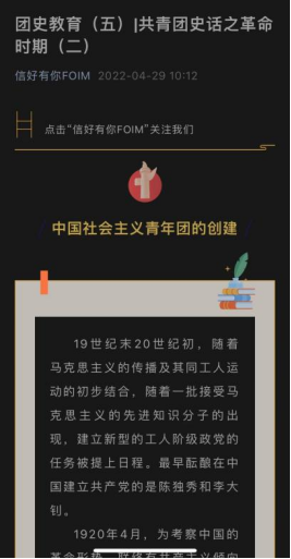 凝聚奋进力量,牢筑信仰之基。betway88西汉姆团委面向青年学生广泛开展团史学习教育,在学院公众号“信好有你FOIM”上开辟“团史教育”专栏,推进理论学习入脑入心,引导青年学史知史,爱团爱党,赓续红色血脉,唱响“请党放心,强国有我”最强音。