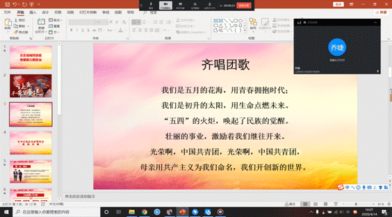 "云"端相聚,心在一起。此次线上主题团日活动的顺利开展,为打赢疫情攻坚战熔铸了坚定信念,切实强化了广大青年团员的责任与担当。信息学子定会迈着扎实的脚步,饱含热切的情怀,做防'疫'的"行动者"、科学的"传播者",用担当作为锻造属于青年的荣光。